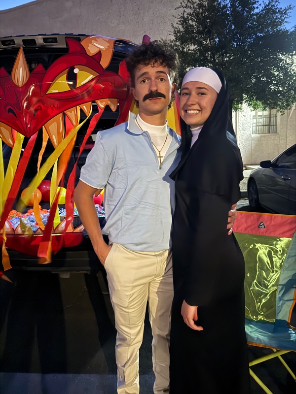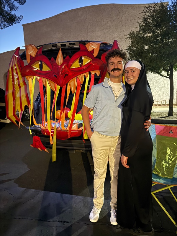 Ward trunk or treat…. Asked Hunter and Aubrie to come help me and they killed it with their Nacho Libre costumes😆